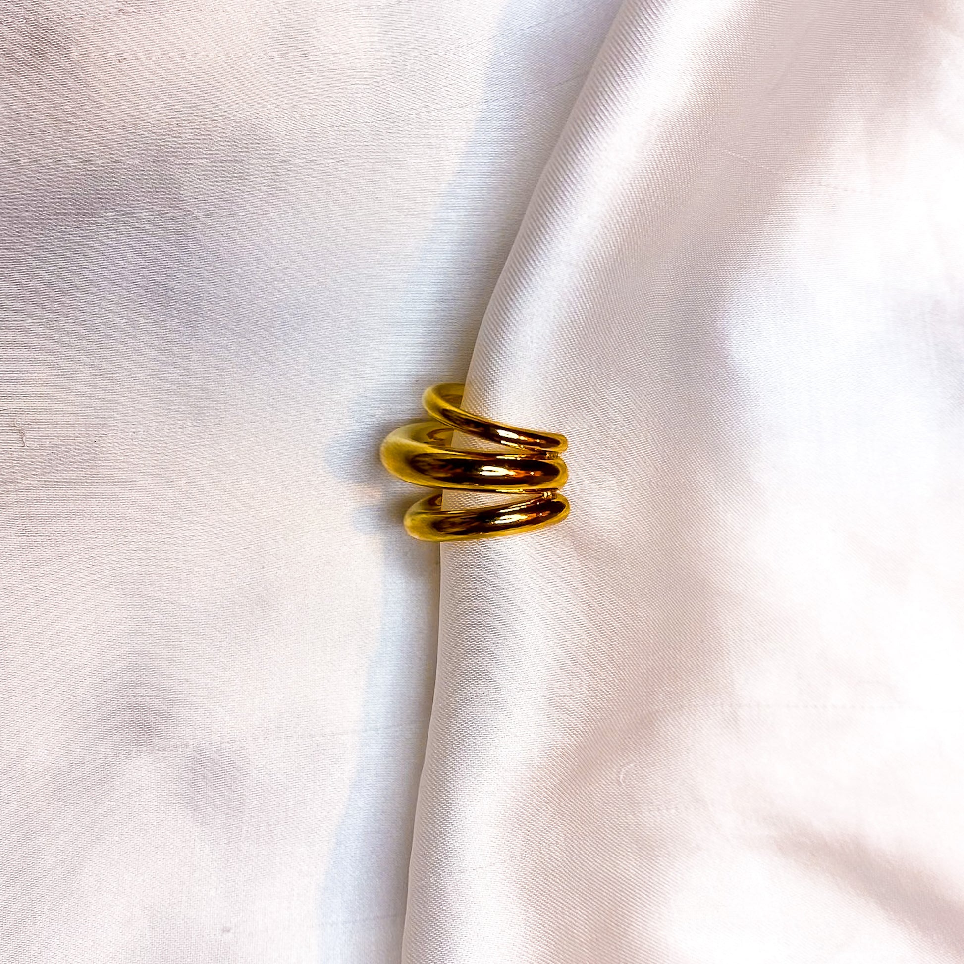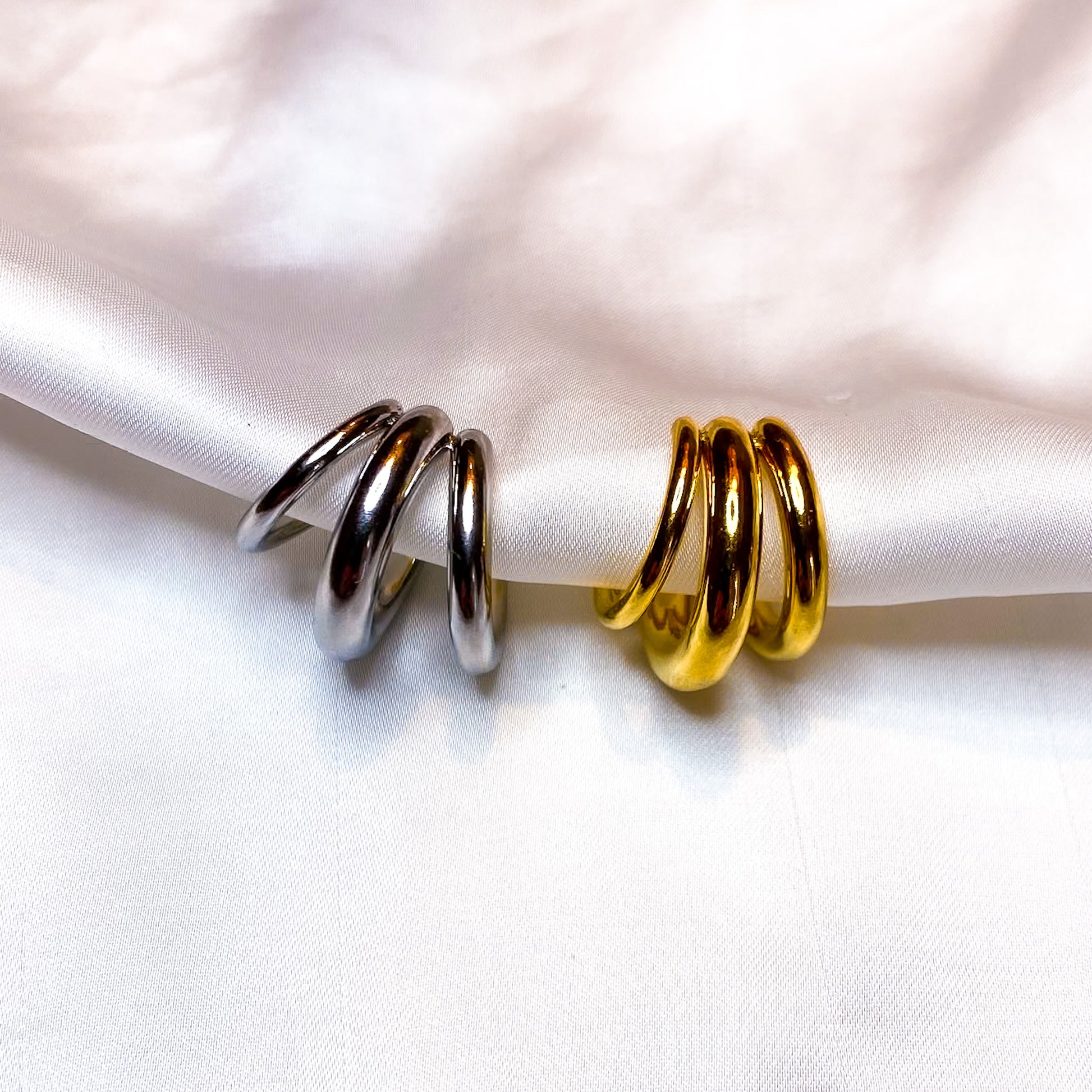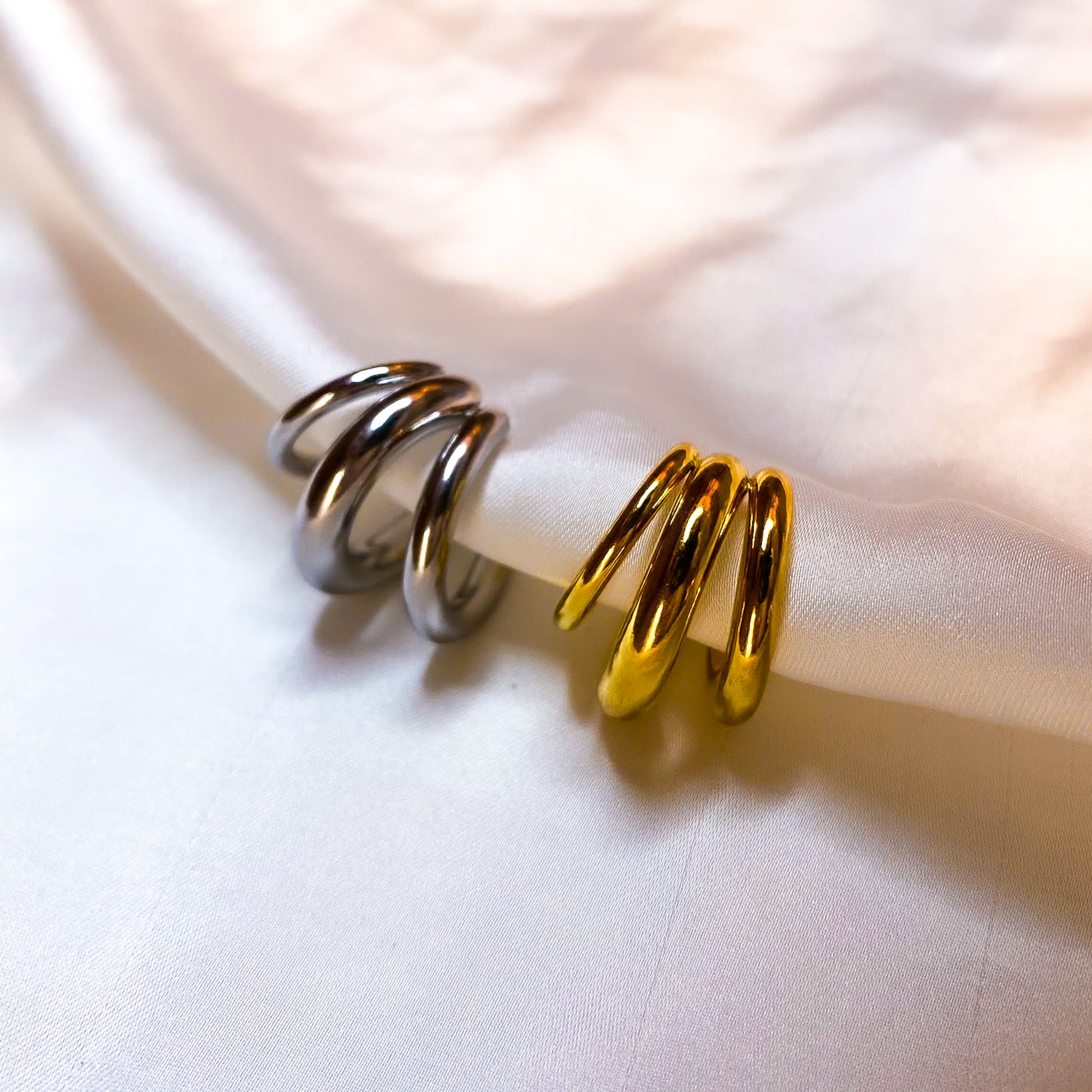 Fake it till you make it! Deze earcuff lijkt alsof hij bestaat uit drie verschillende ringetjes, maar het is er maar 1. Daardoor super leuk om te combineren met grote chunky Klipoorbellen en andere ear cuffs om je hele oor vol te 'stacken' met accessoires. Beschikbaar in het zilver- en goudkleurig.